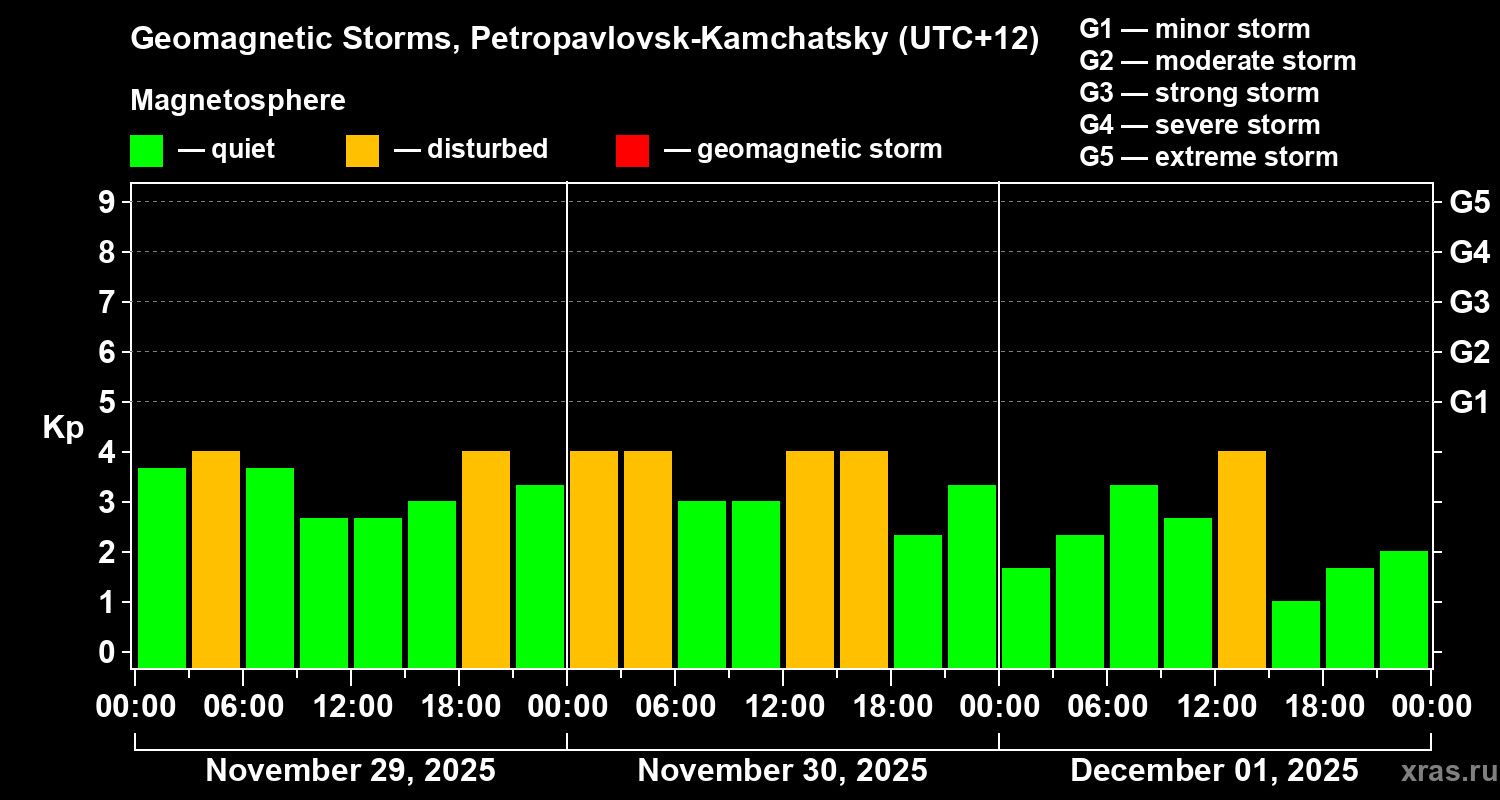Geomagnetic storms in Petropavlovsk-Kamchatsky on Dec 01, 2025