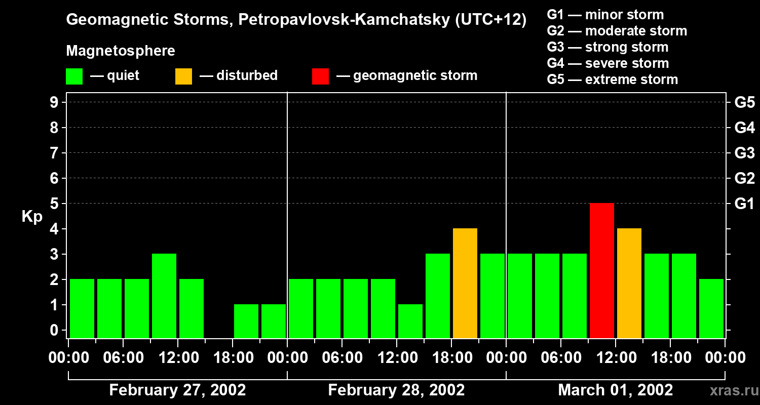 Geomagnetic storms in Petropavlovsk-Kamchatsky on Mar 01, 2002