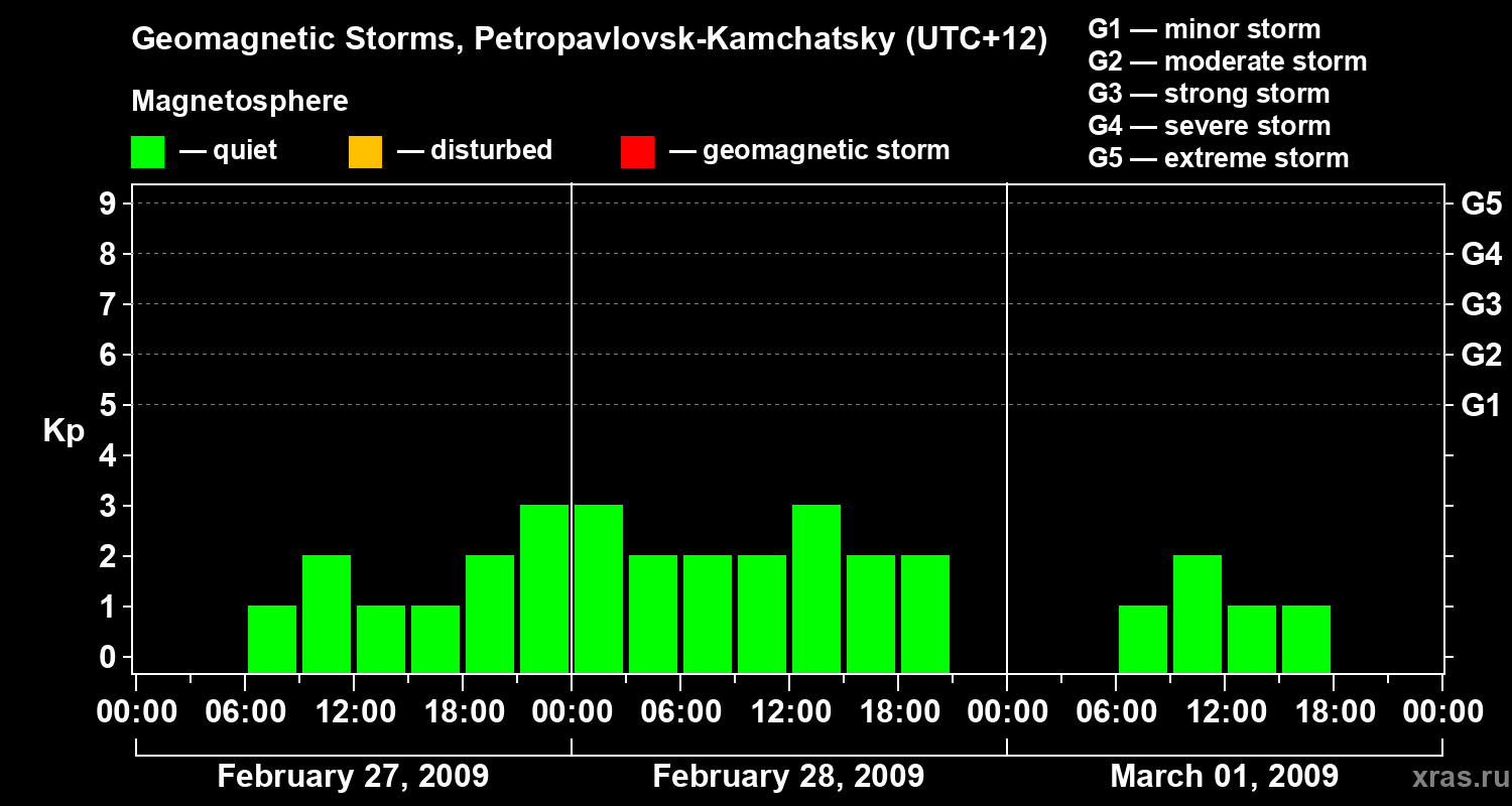 Geomagnetic storms in Petropavlovsk-Kamchatsky on Mar 01, 2009