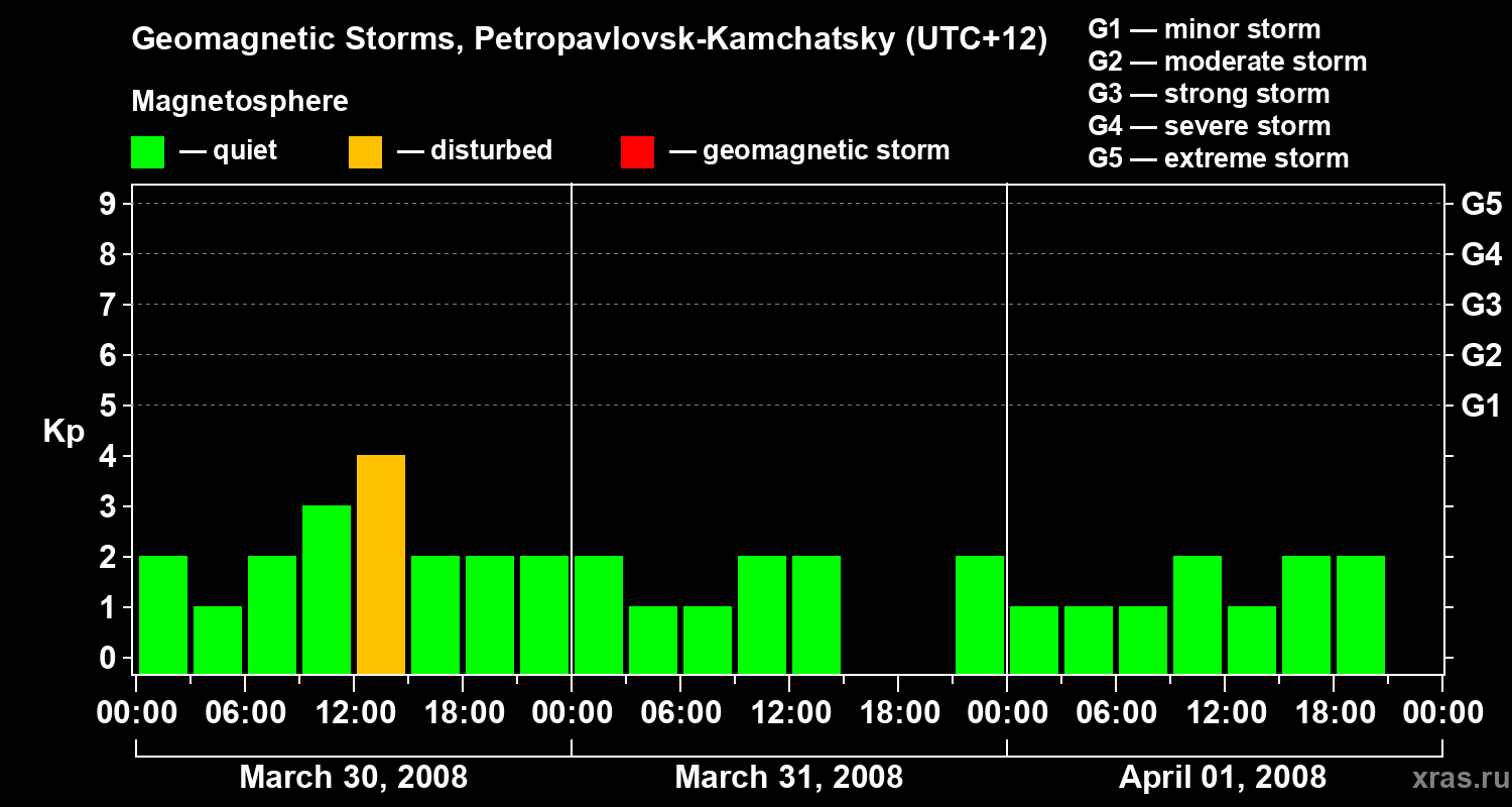 Geomagnetic storms in Petropavlovsk-Kamchatsky on Apr 01, 2008