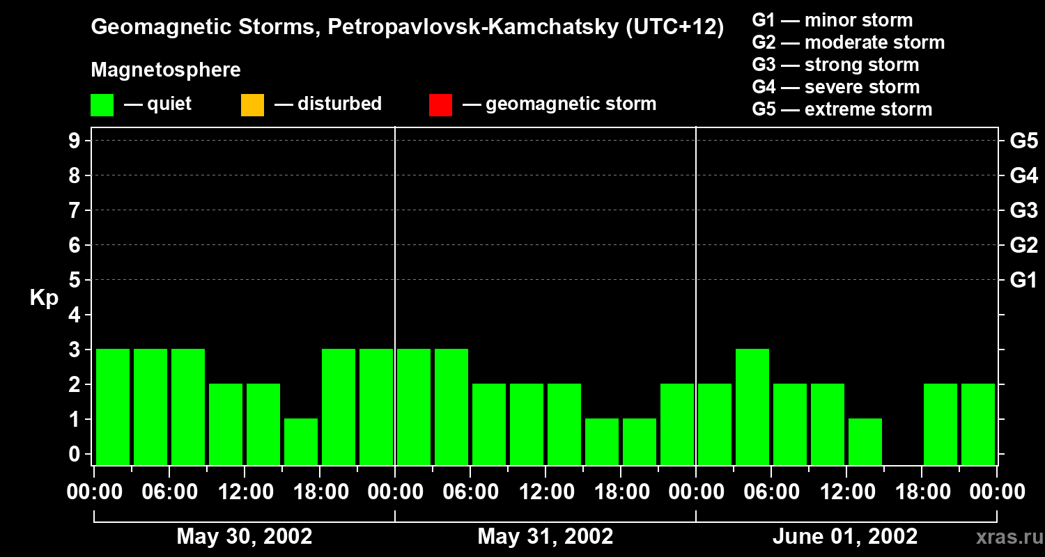 Geomagnetic storms in Petropavlovsk-Kamchatsky on Jun 01, 2002
