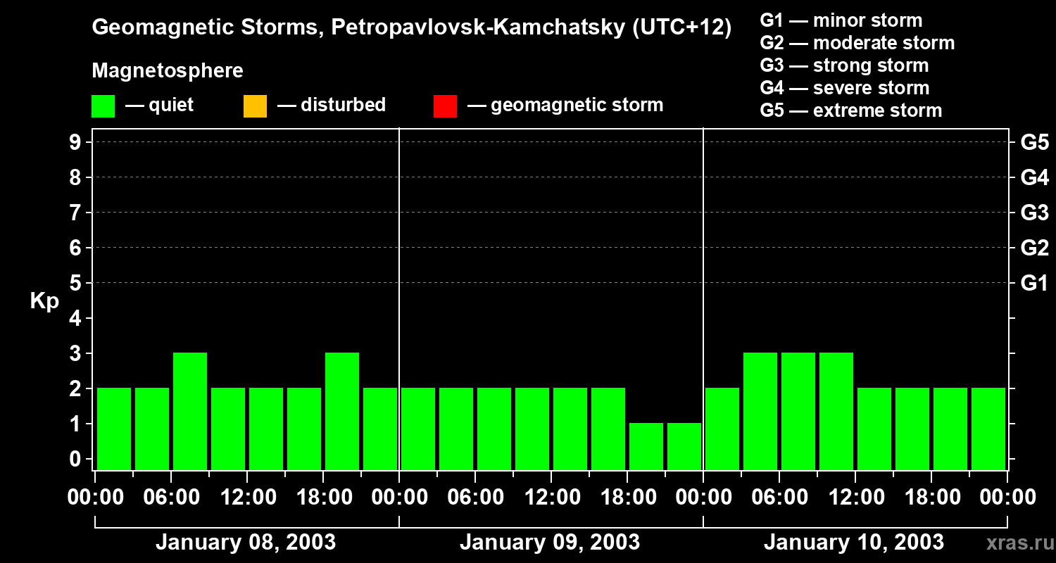 Geomagnetic storms in Petropavlovsk-Kamchatsky — Jan 10, 2003