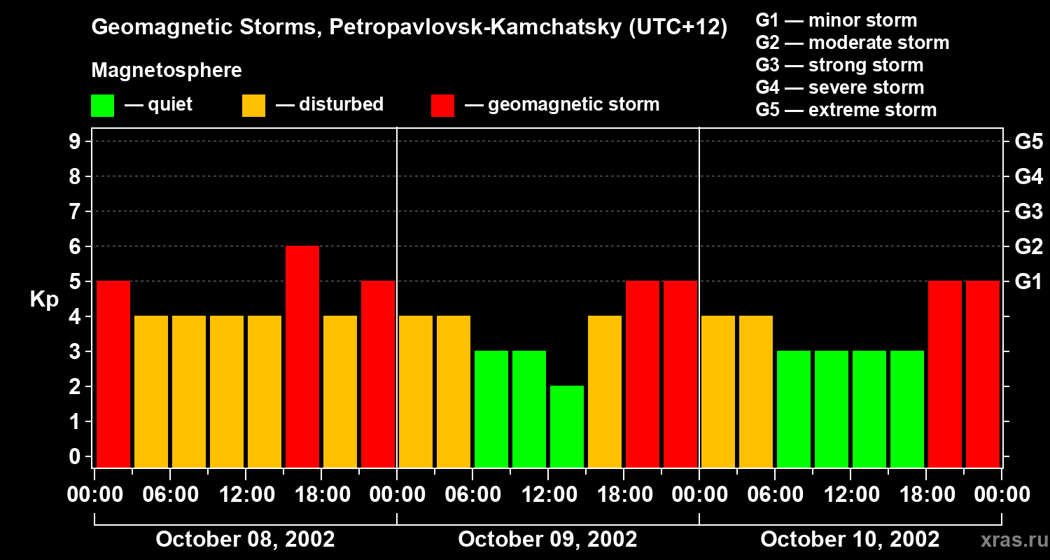 Geomagnetic storms in Petropavlovsk-Kamchatsky — Oct 10, 2002
