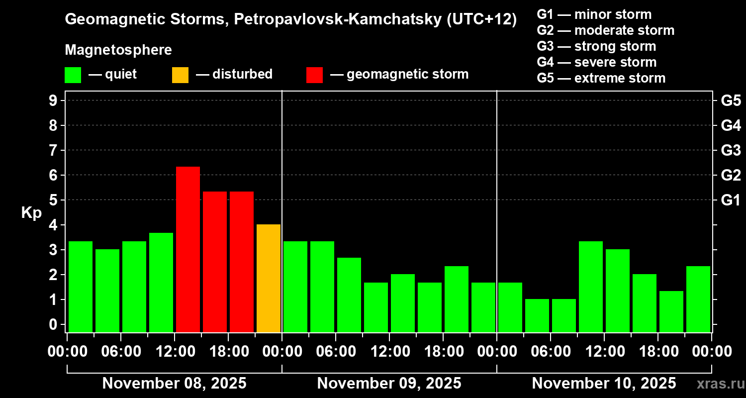 Geomagnetic storms in Petropavlovsk-Kamchatsky — Nov 10, 2025