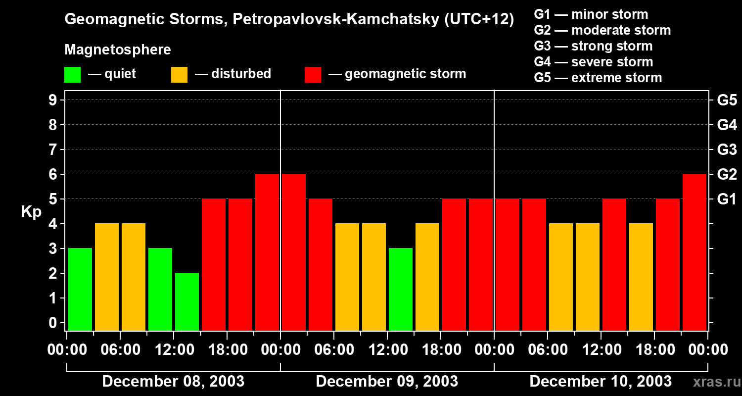 Geomagnetic storms in Petropavlovsk-Kamchatsky — Dec 10, 2003