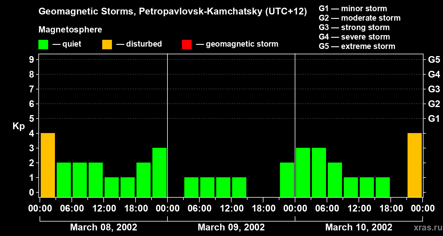 Geomagnetic storms in Petropavlovsk-Kamchatsky — Mar 10, 2002