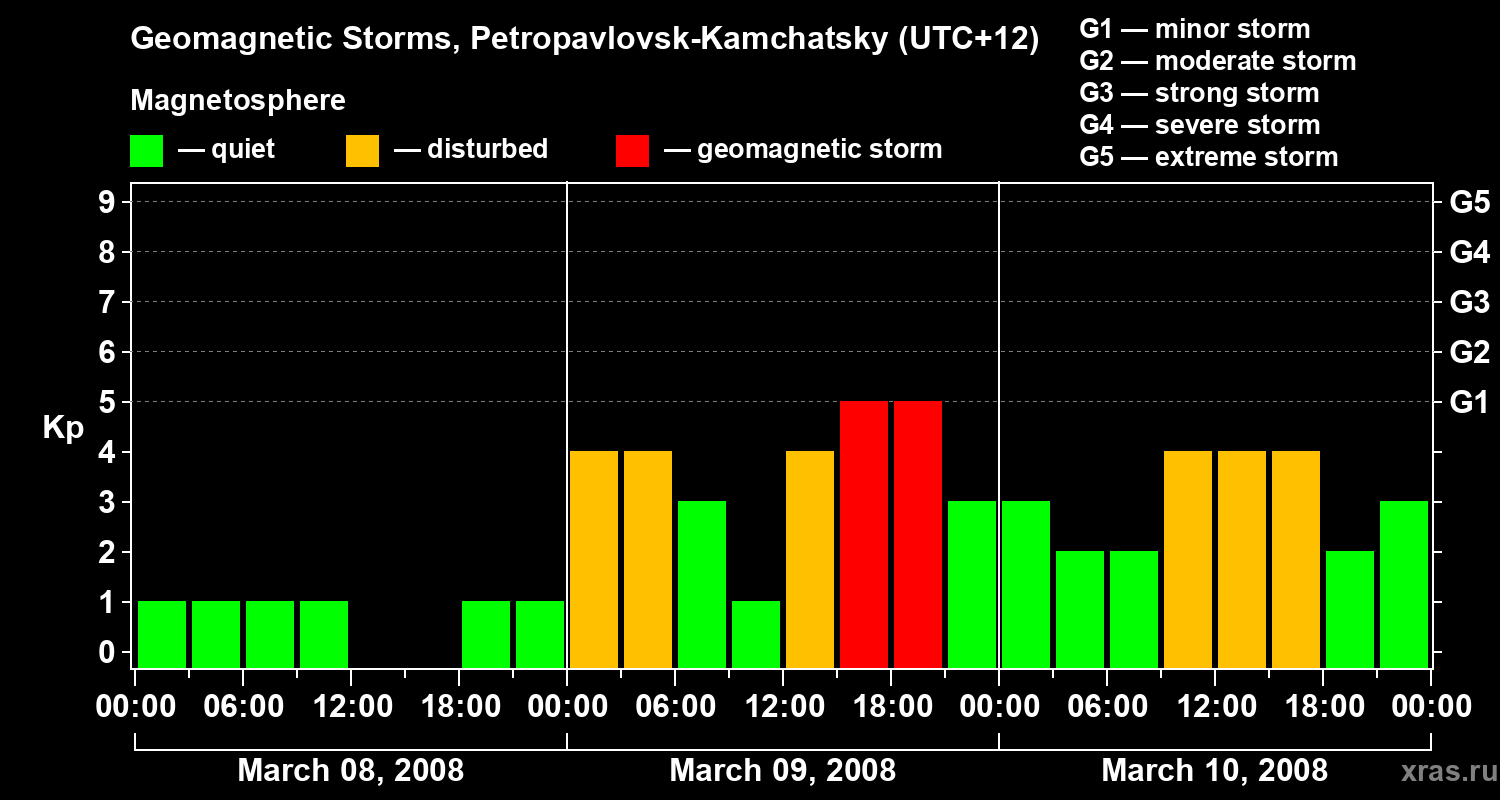 Geomagnetic storms in Petropavlovsk-Kamchatsky — Mar 10, 2008