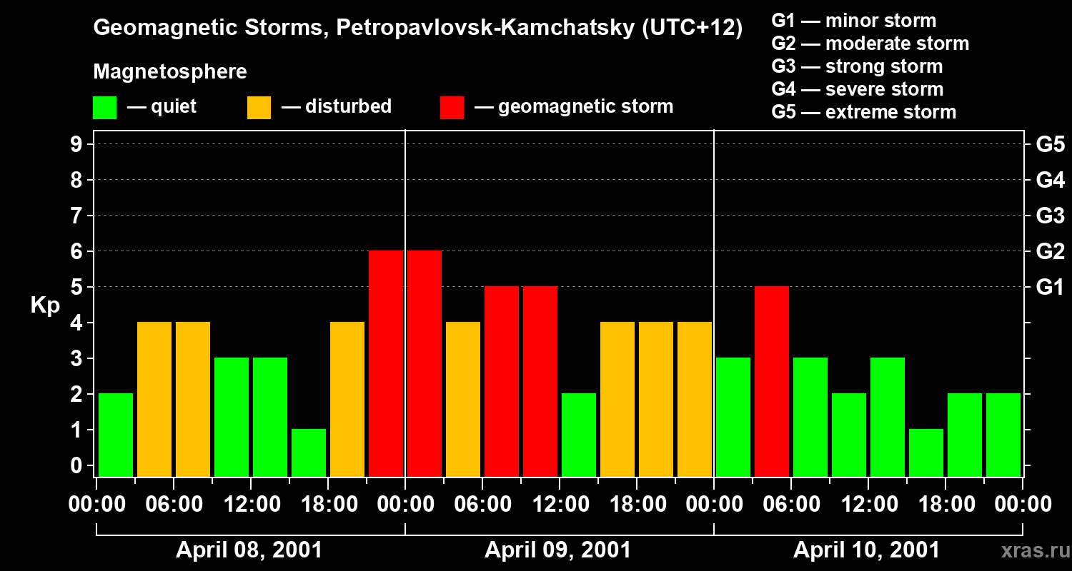 Geomagnetic storms in Petropavlovsk-Kamchatsky — Apr 10, 2001