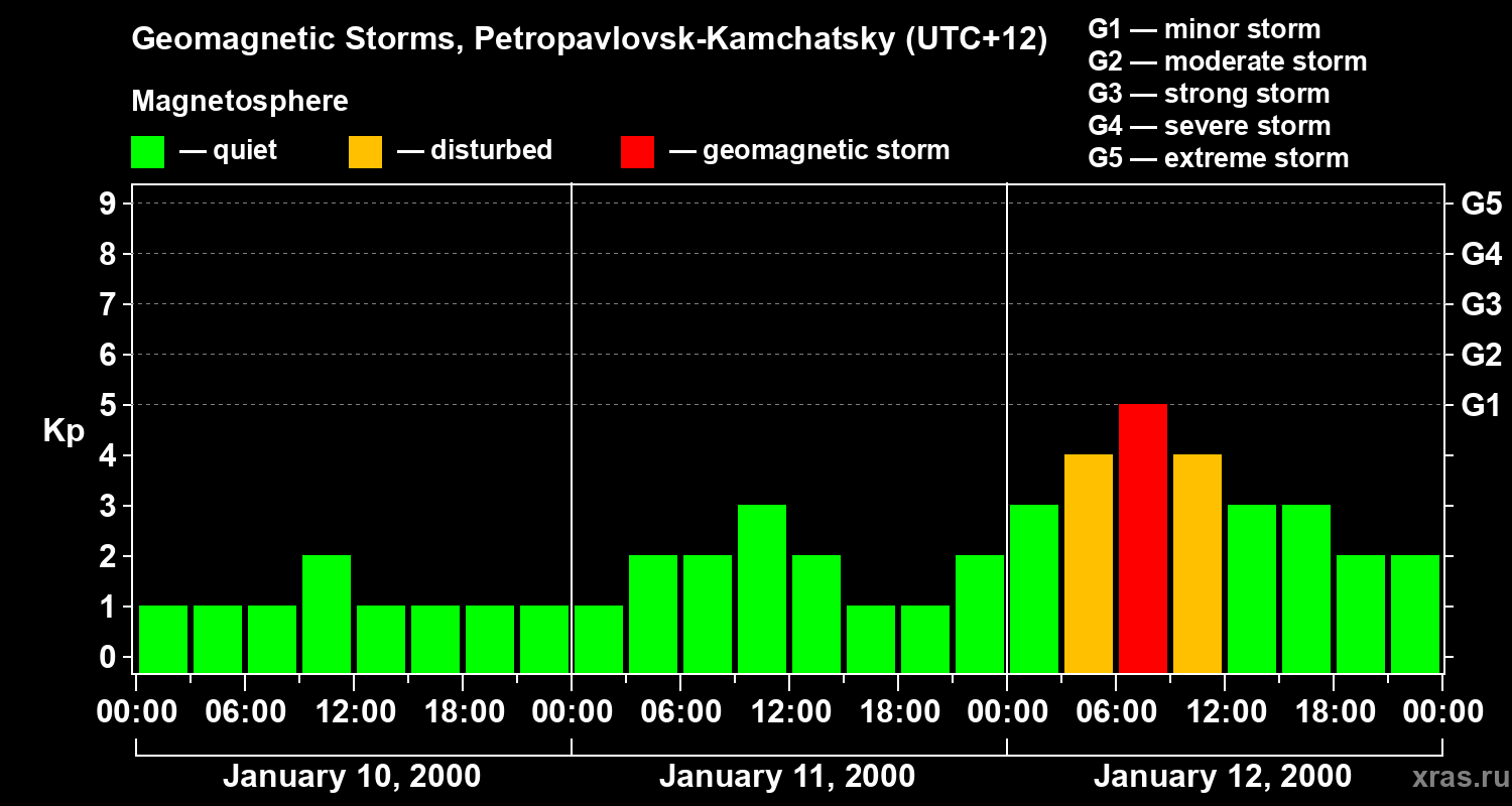 Geomagnetic storms in Petropavlovsk-Kamchatsky — Jan 12, 2000