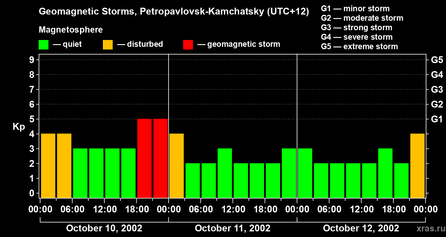 Geomagnetic storms in Petropavlovsk-Kamchatsky — Oct 12, 2002