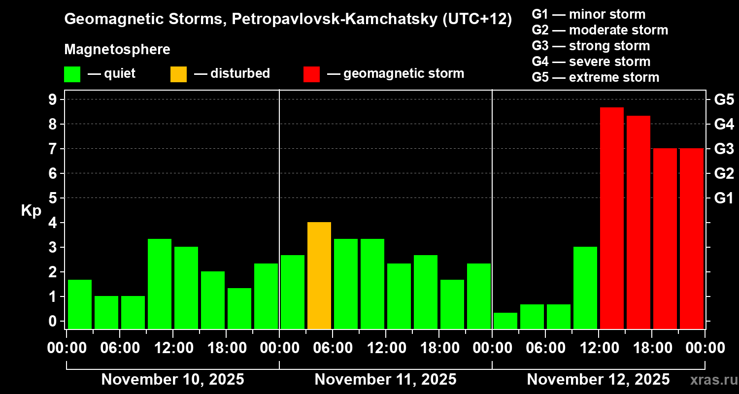 Geomagnetic storms in Petropavlovsk-Kamchatsky on Nov 12, 2025