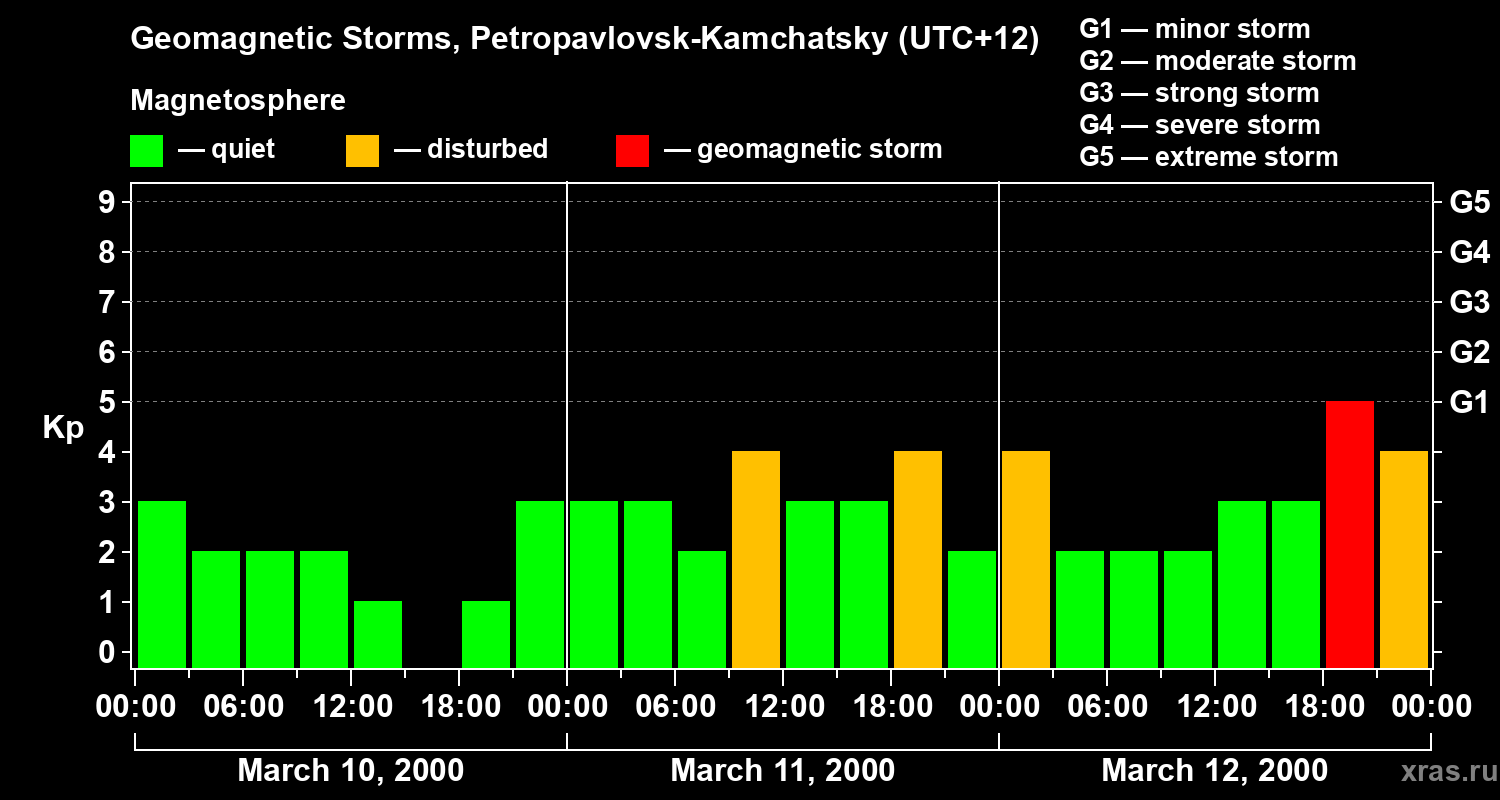 Geomagnetic storms in Petropavlovsk-Kamchatsky — Mar 12, 2000