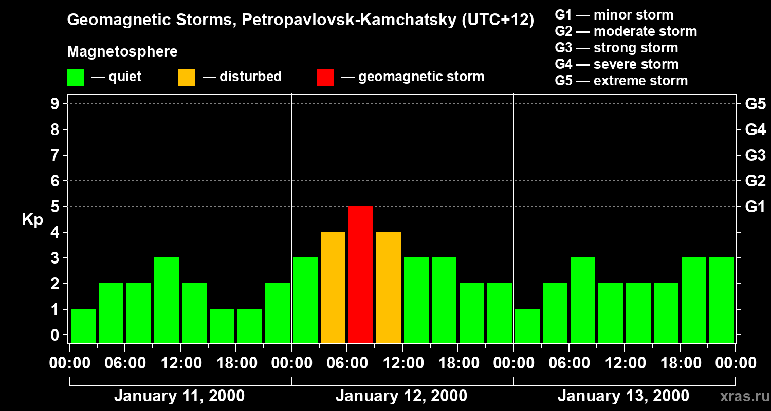 Geomagnetic storms in Petropavlovsk-Kamchatsky — Jan 13, 2000