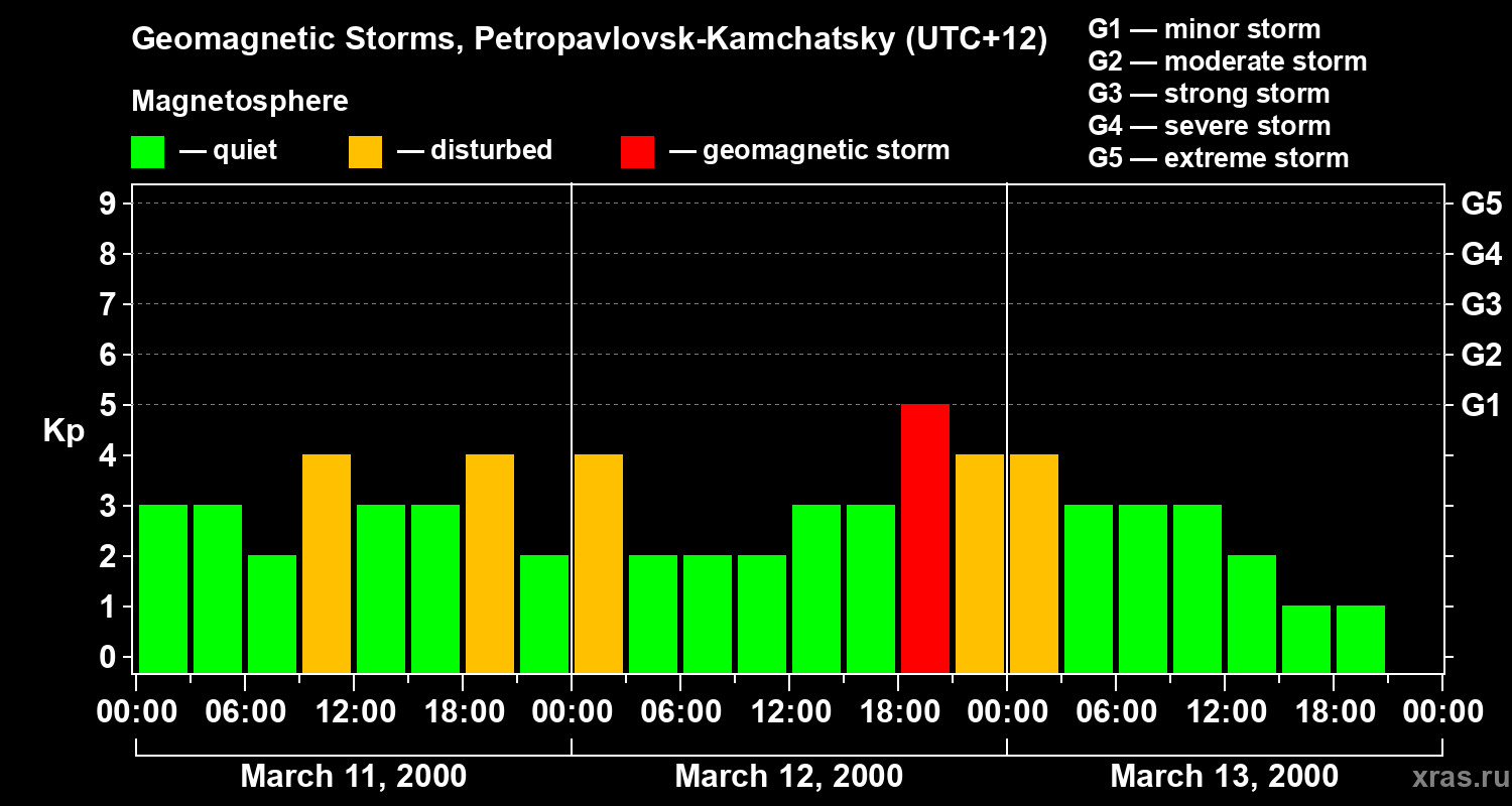 Geomagnetic storms in Petropavlovsk-Kamchatsky — Mar 13, 2000