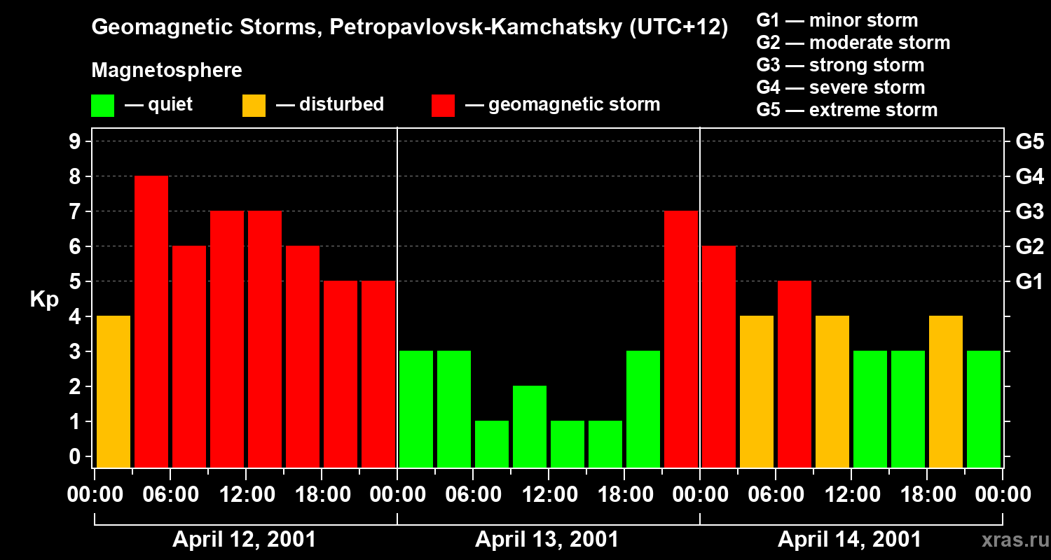Geomagnetic storms in Petropavlovsk-Kamchatsky — Apr 14, 2001