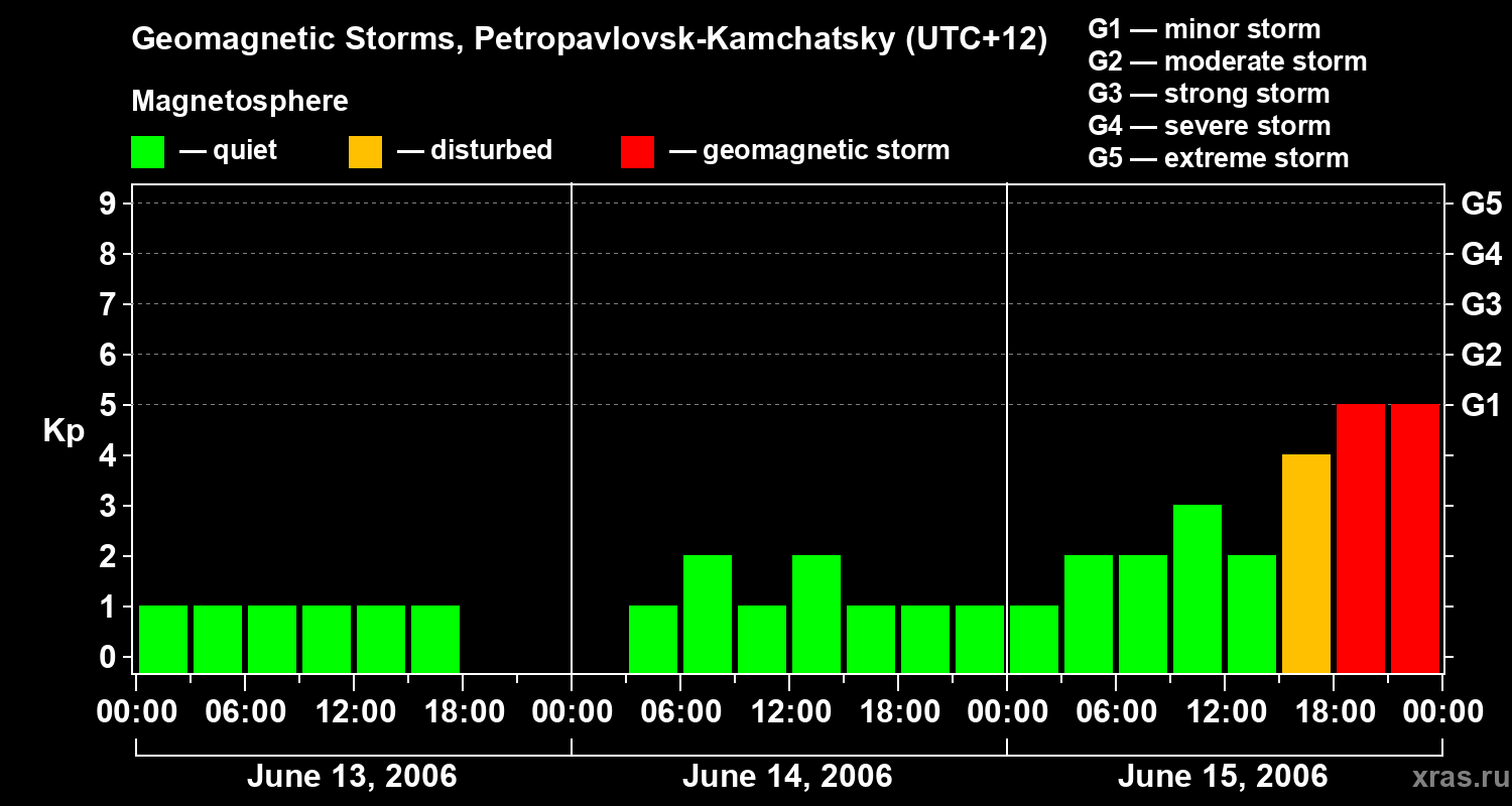 Geomagnetic storms in Petropavlovsk-Kamchatsky — Jun 15, 2006