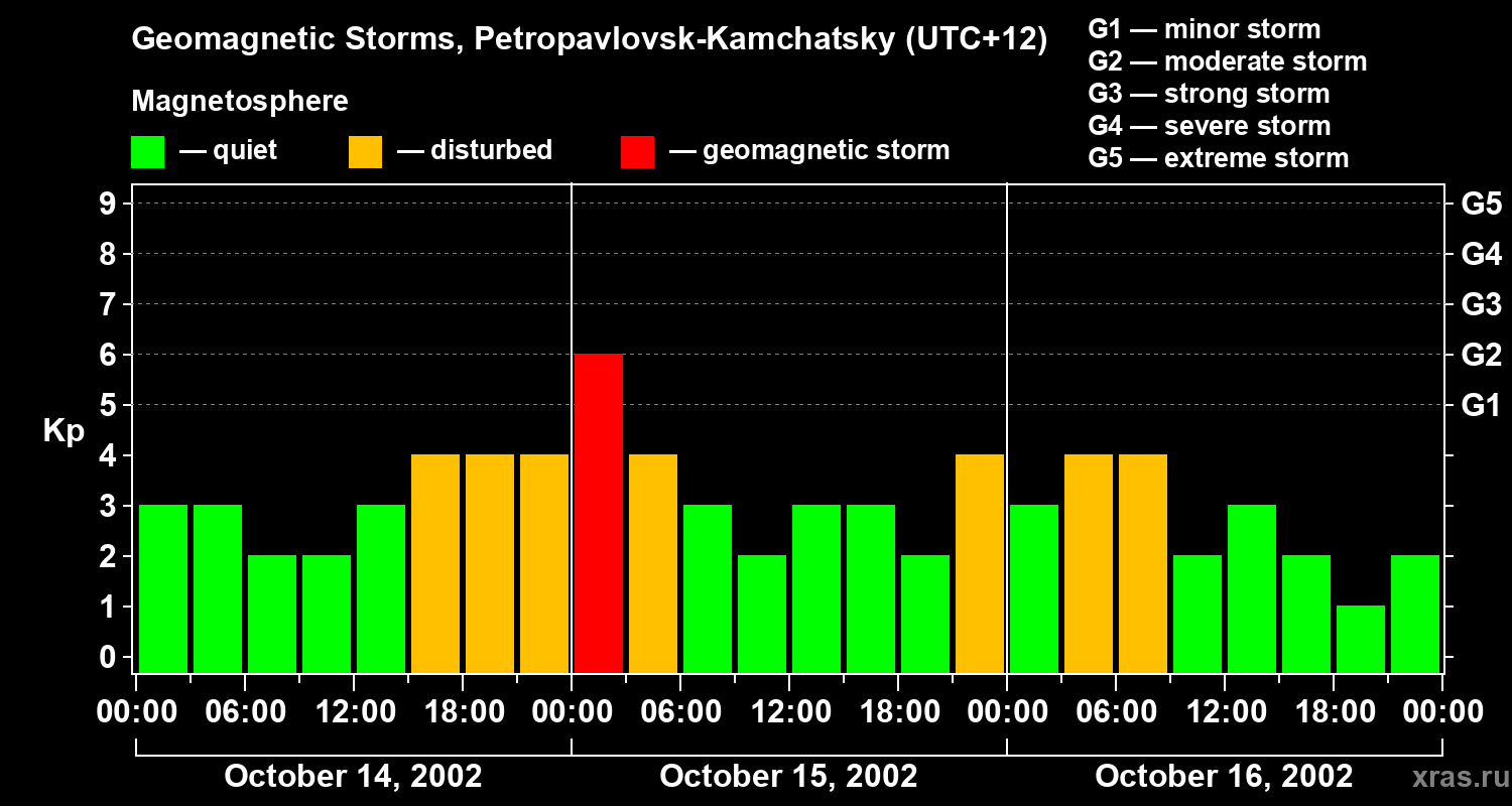 Geomagnetic storms in Petropavlovsk-Kamchatsky — Oct 16, 2002