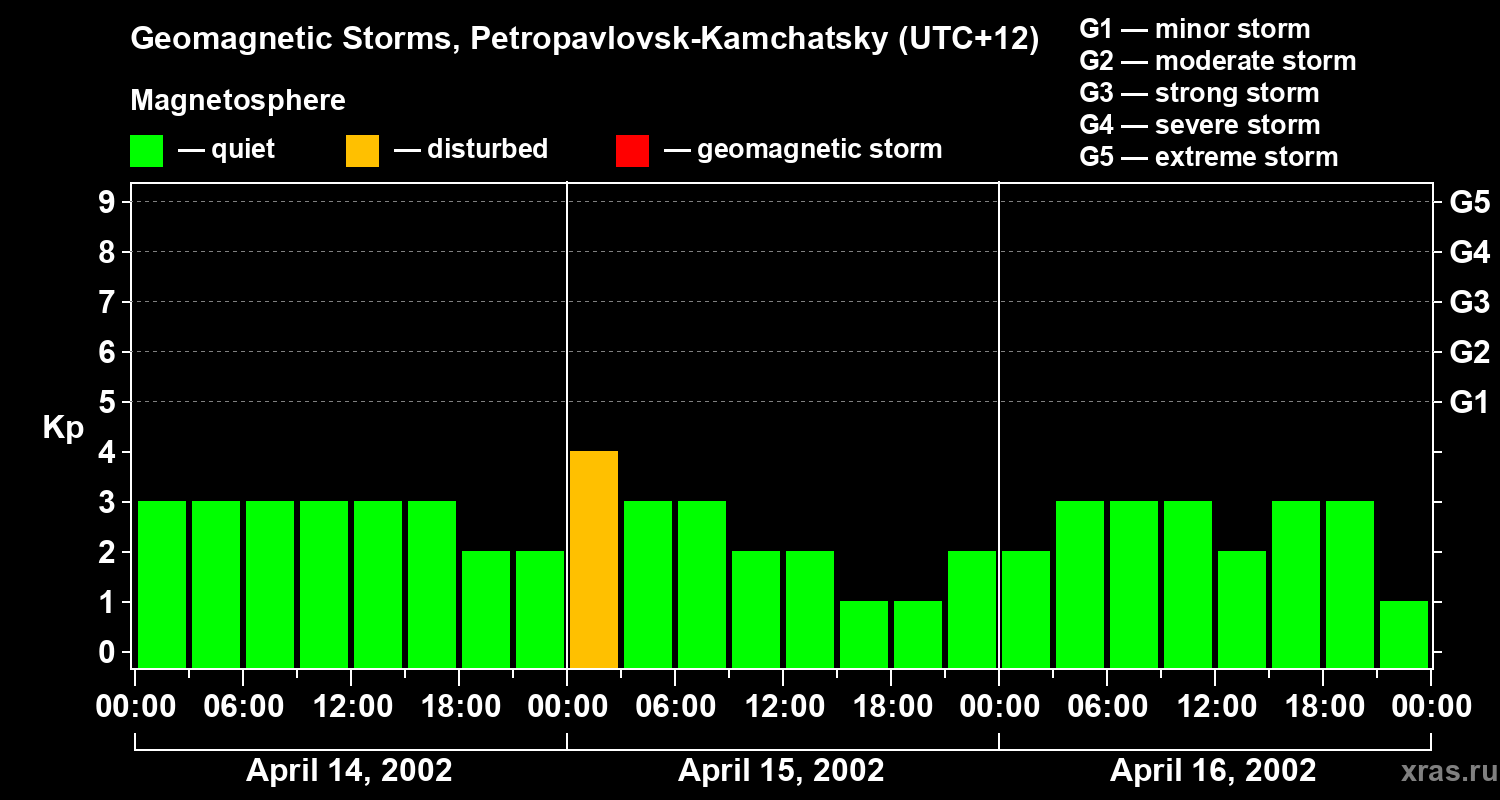 Geomagnetic storms in Petropavlovsk-Kamchatsky — Apr 16, 2002