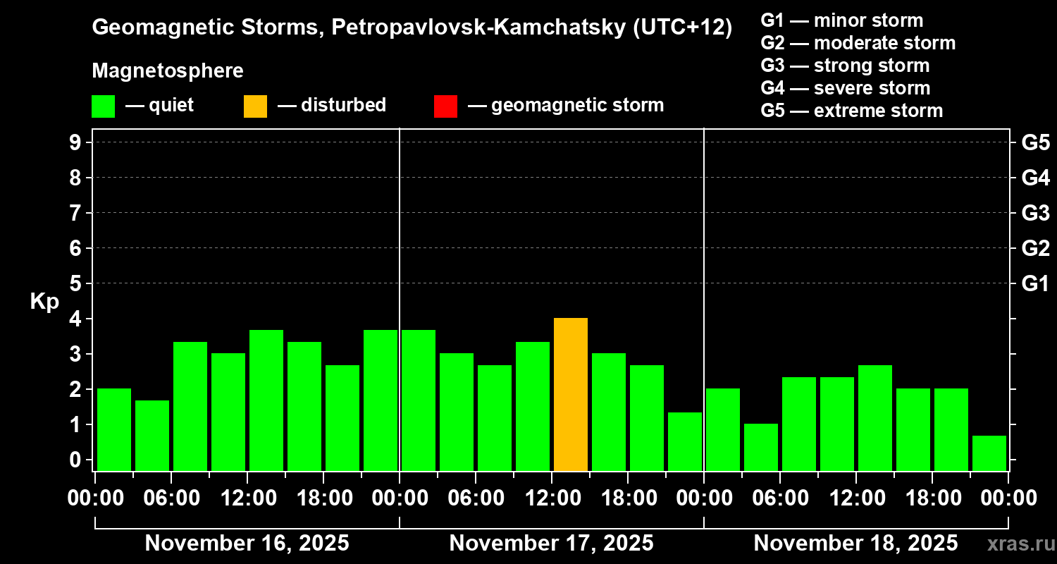 Geomagnetic storms in Petropavlovsk-Kamchatsky on Nov 18, 2025