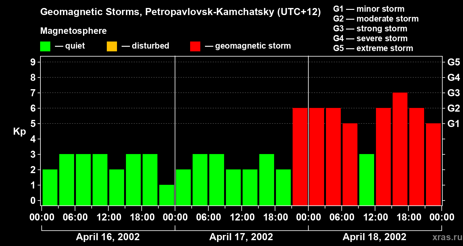 Geomagnetic storms in Petropavlovsk-Kamchatsky — Apr 18, 2002