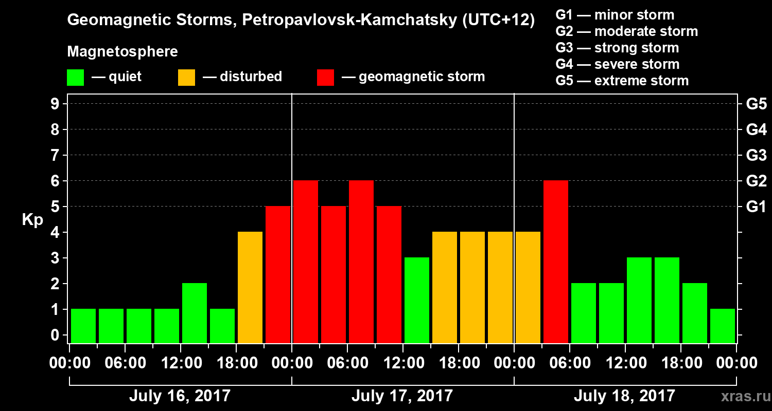 Geomagnetic storms in Petropavlovsk-Kamchatsky — Jul 18, 2017