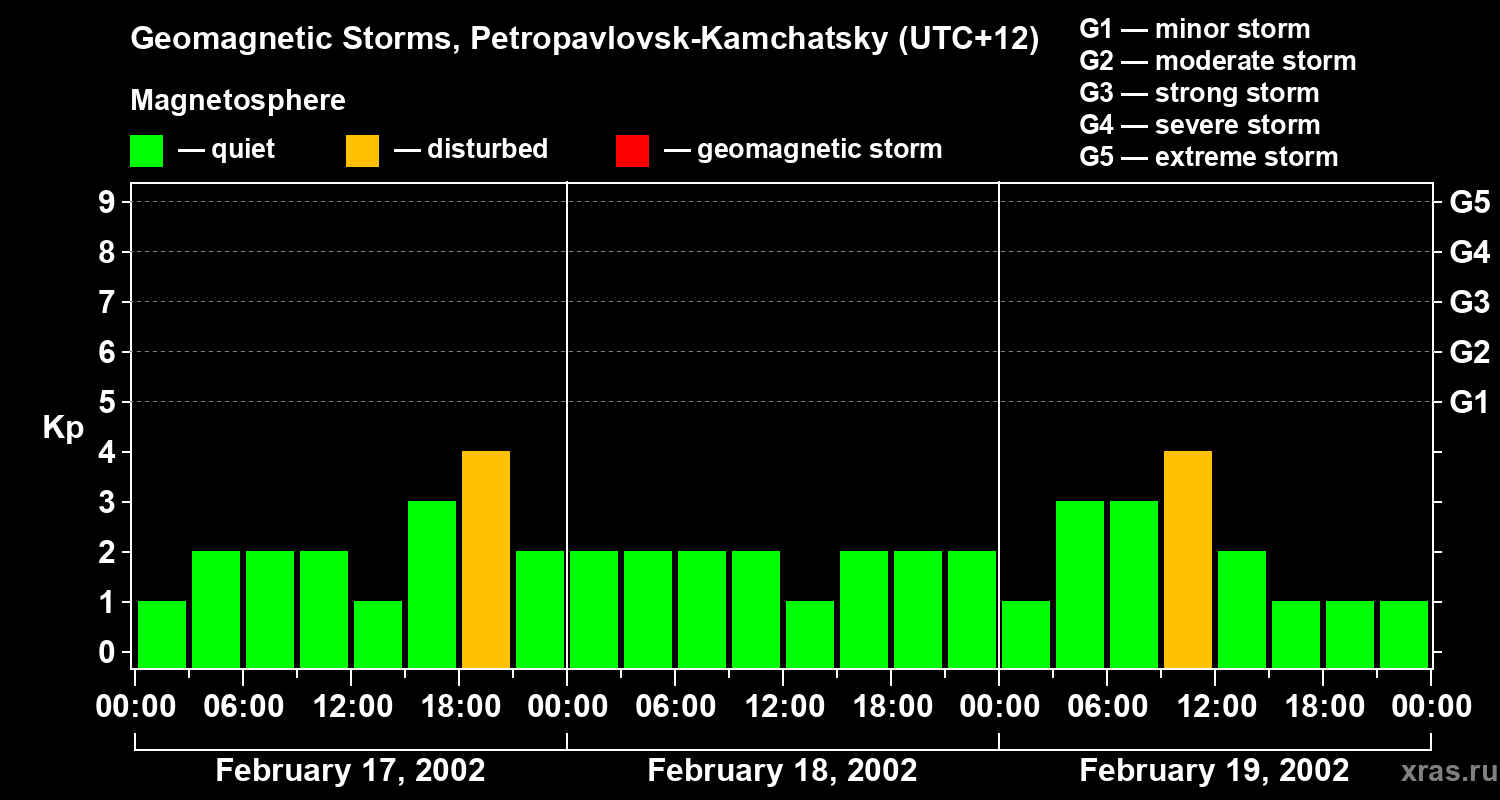 Geomagnetic storms in Petropavlovsk-Kamchatsky — Feb 19, 2002