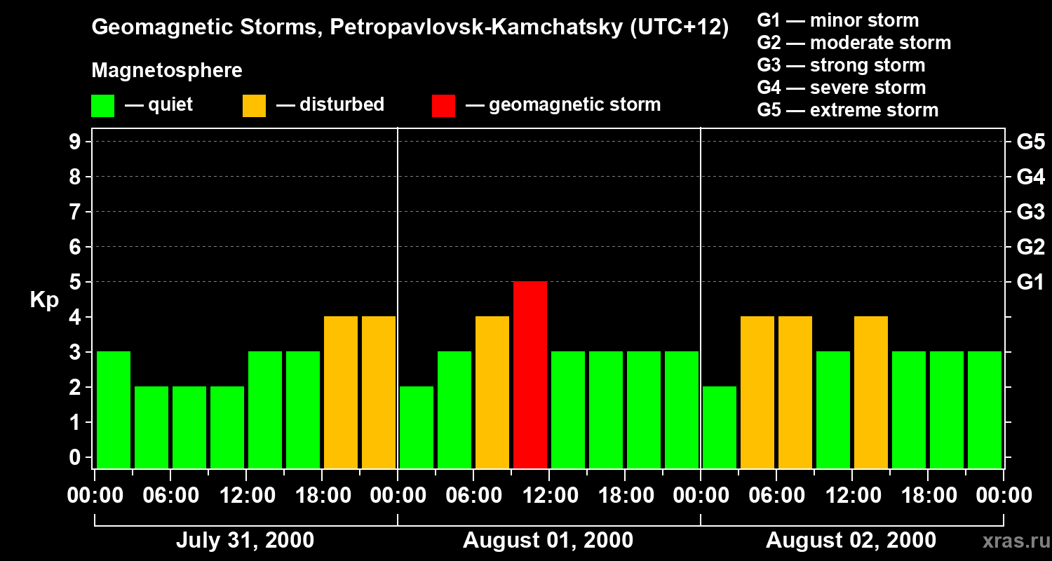 Geomagnetic storms in Petropavlovsk-Kamchatsky — Aug 02, 2000