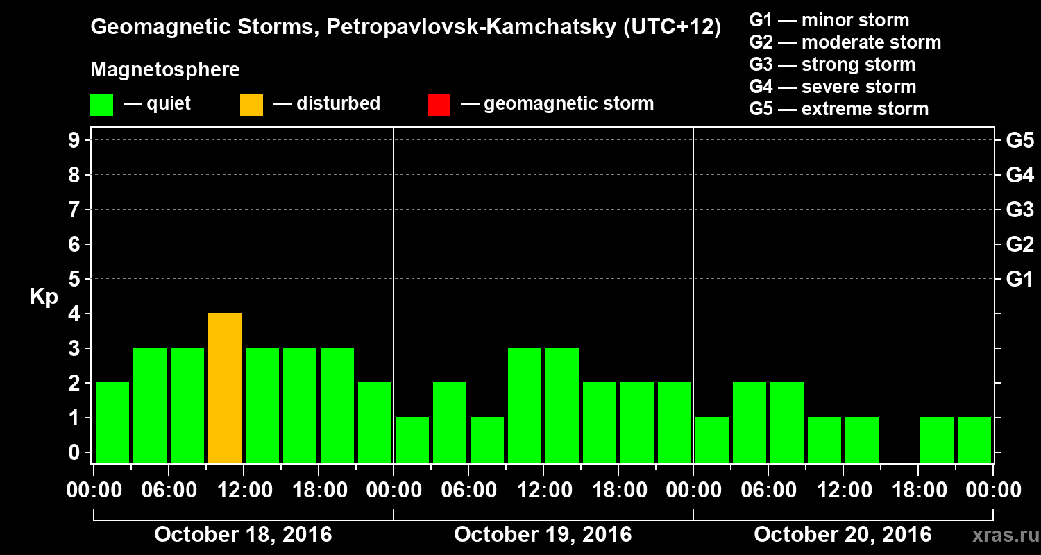 Geomagnetic storms in Petropavlovsk-Kamchatsky on Oct 20, 2016