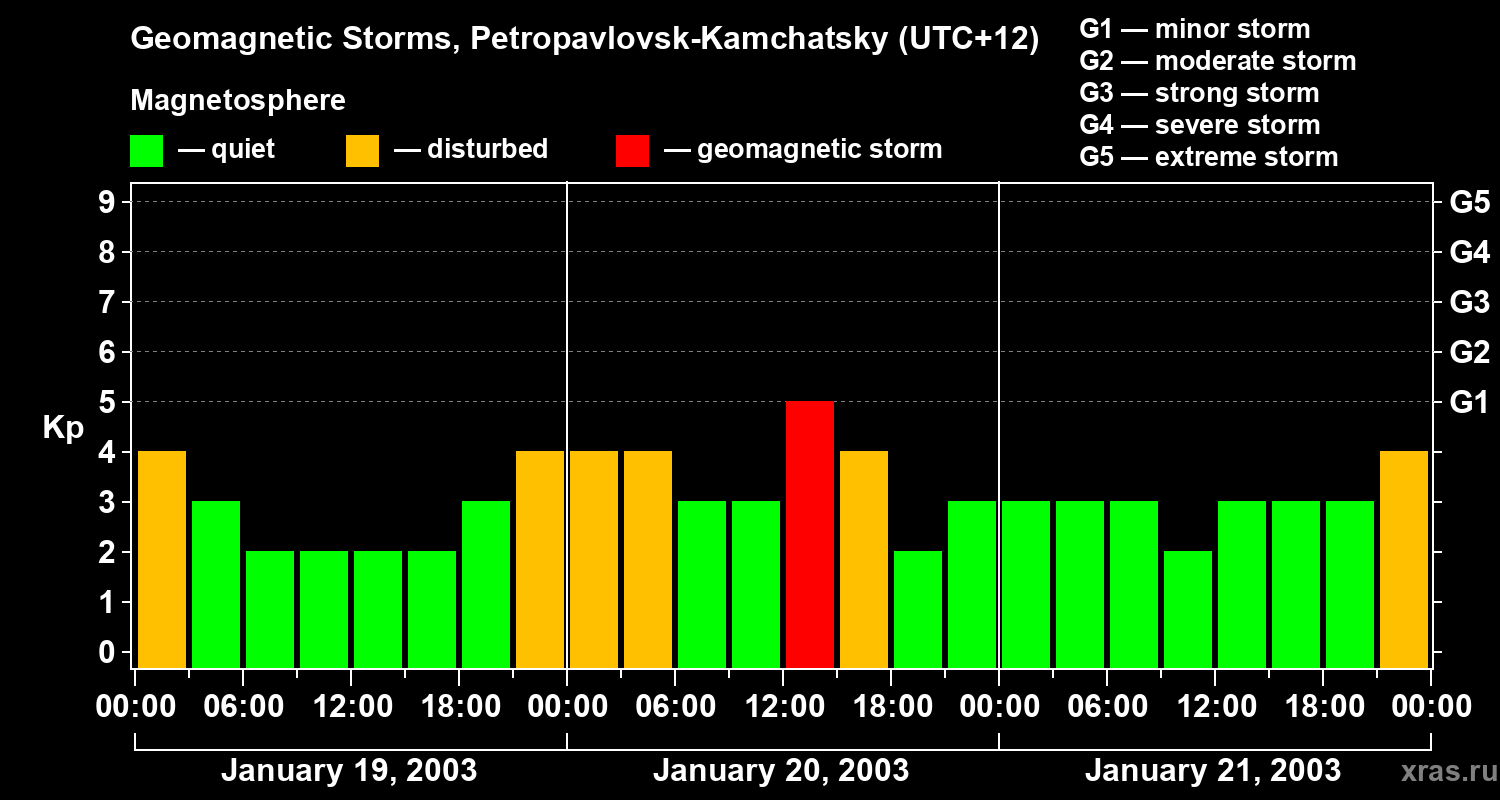 Geomagnetic storms in Petropavlovsk-Kamchatsky — Jan 21, 2003