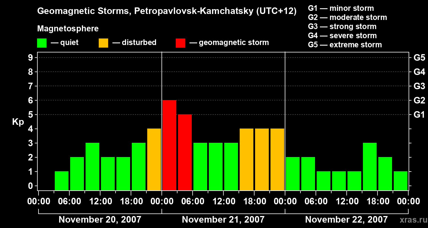 Geomagnetic storms in Petropavlovsk-Kamchatsky — Nov 22, 2007