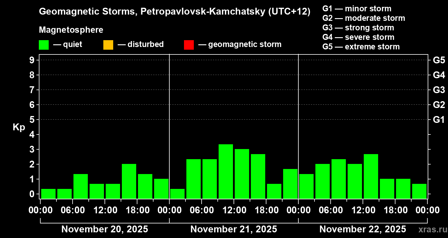 Geomagnetic storms in Petropavlovsk-Kamchatsky on Nov 22, 2025