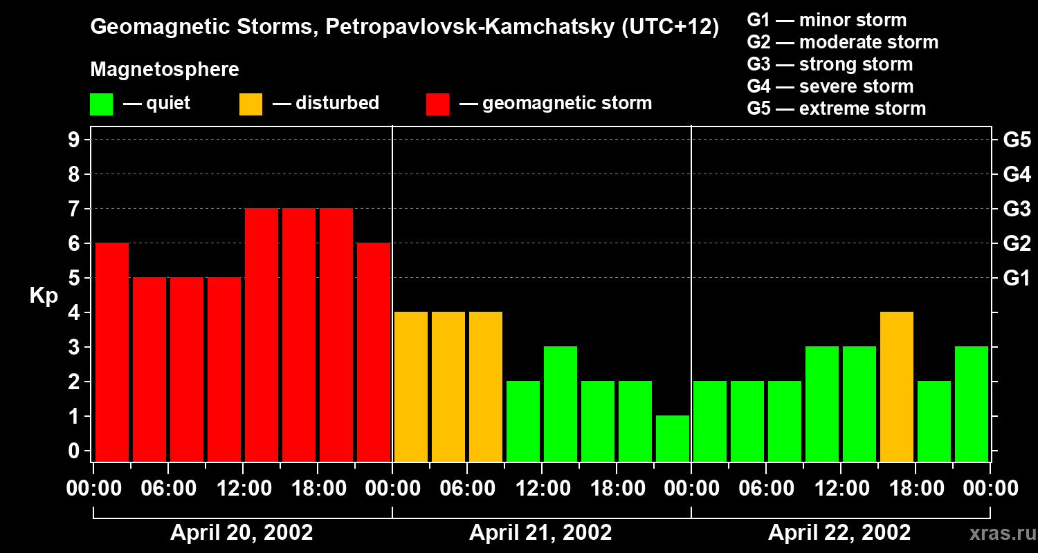 Geomagnetic storms in Petropavlovsk-Kamchatsky — Apr 22, 2002
