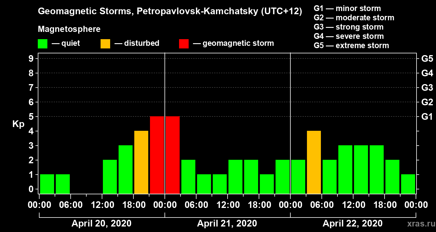 Geomagnetic storms in Petropavlovsk-Kamchatsky — Apr 22, 2020