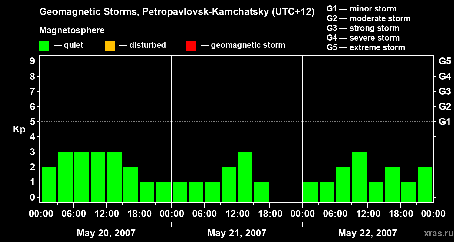 Geomagnetic storms in Petropavlovsk-Kamchatsky on May 22, 2007
