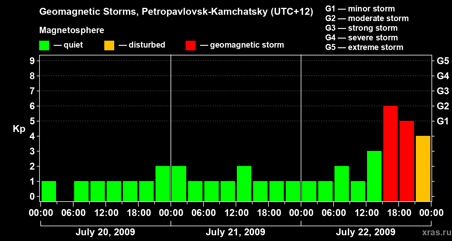 Geomagnetic storms in Petropavlovsk-Kamchatsky — Jul 22, 2009