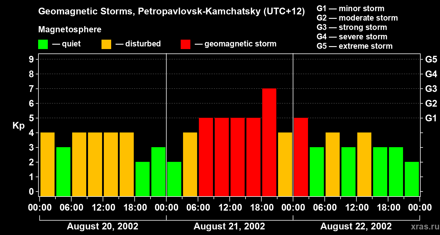 Geomagnetic storms in Petropavlovsk-Kamchatsky — Aug 22, 2002