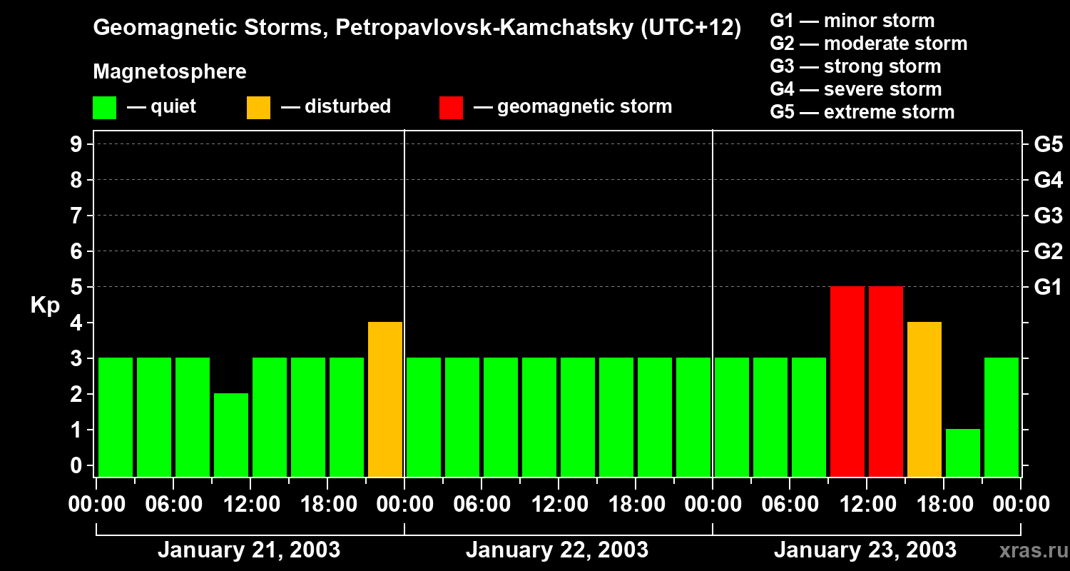 Geomagnetic storms in Petropavlovsk-Kamchatsky — Jan 23, 2003