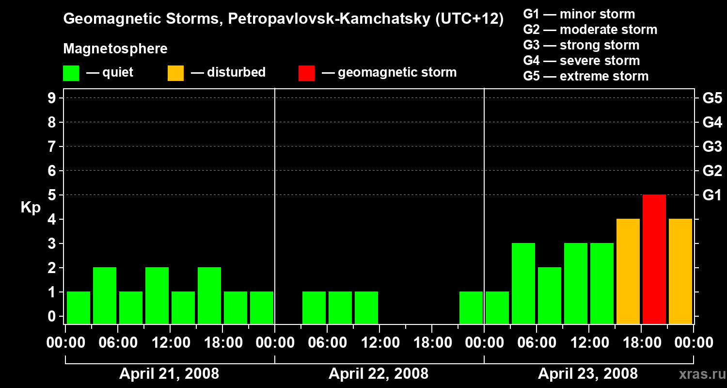 Geomagnetic storms in Petropavlovsk-Kamchatsky — Apr 23, 2008