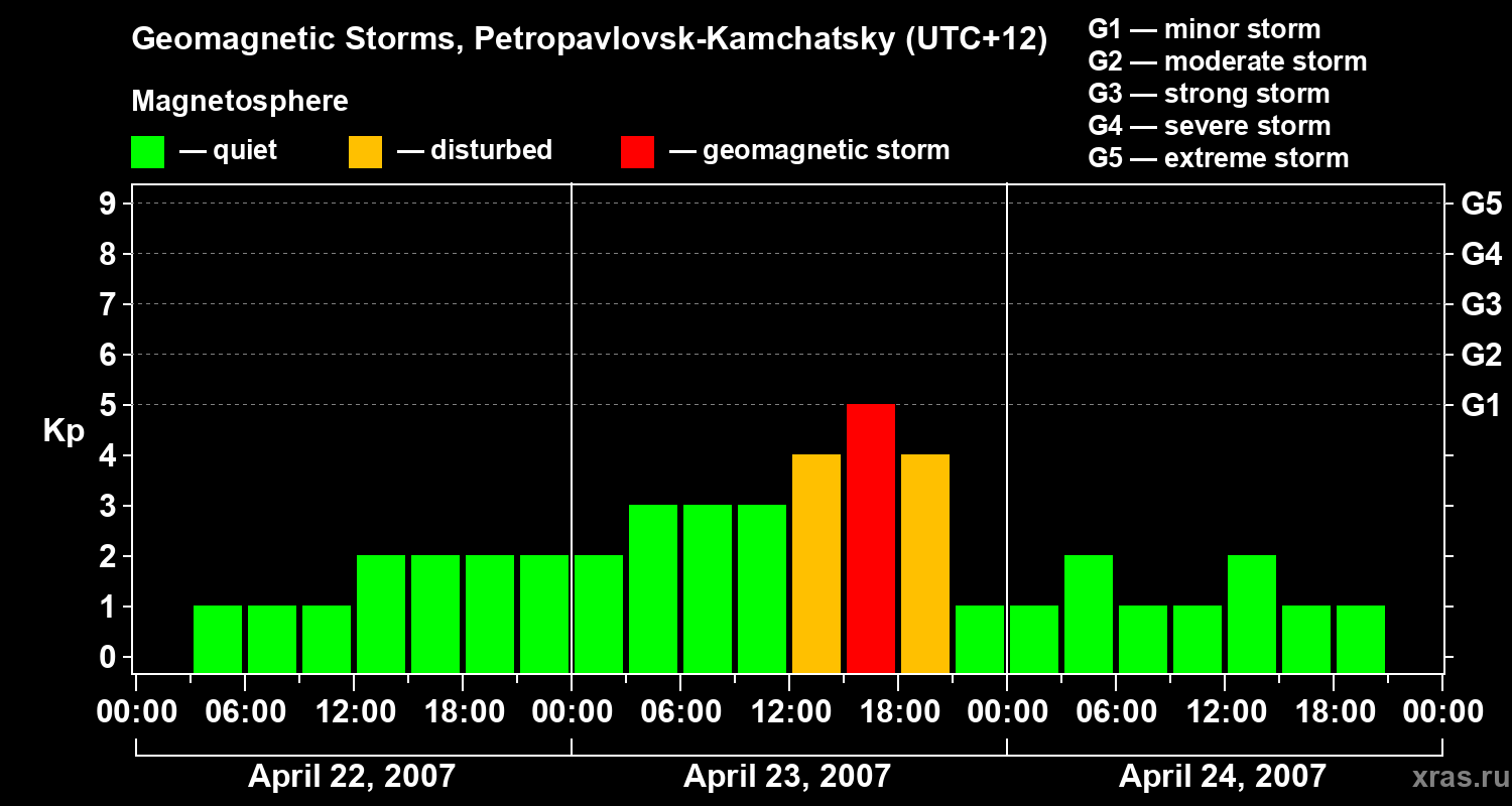 Geomagnetic storms in Petropavlovsk-Kamchatsky — Apr 24, 2007