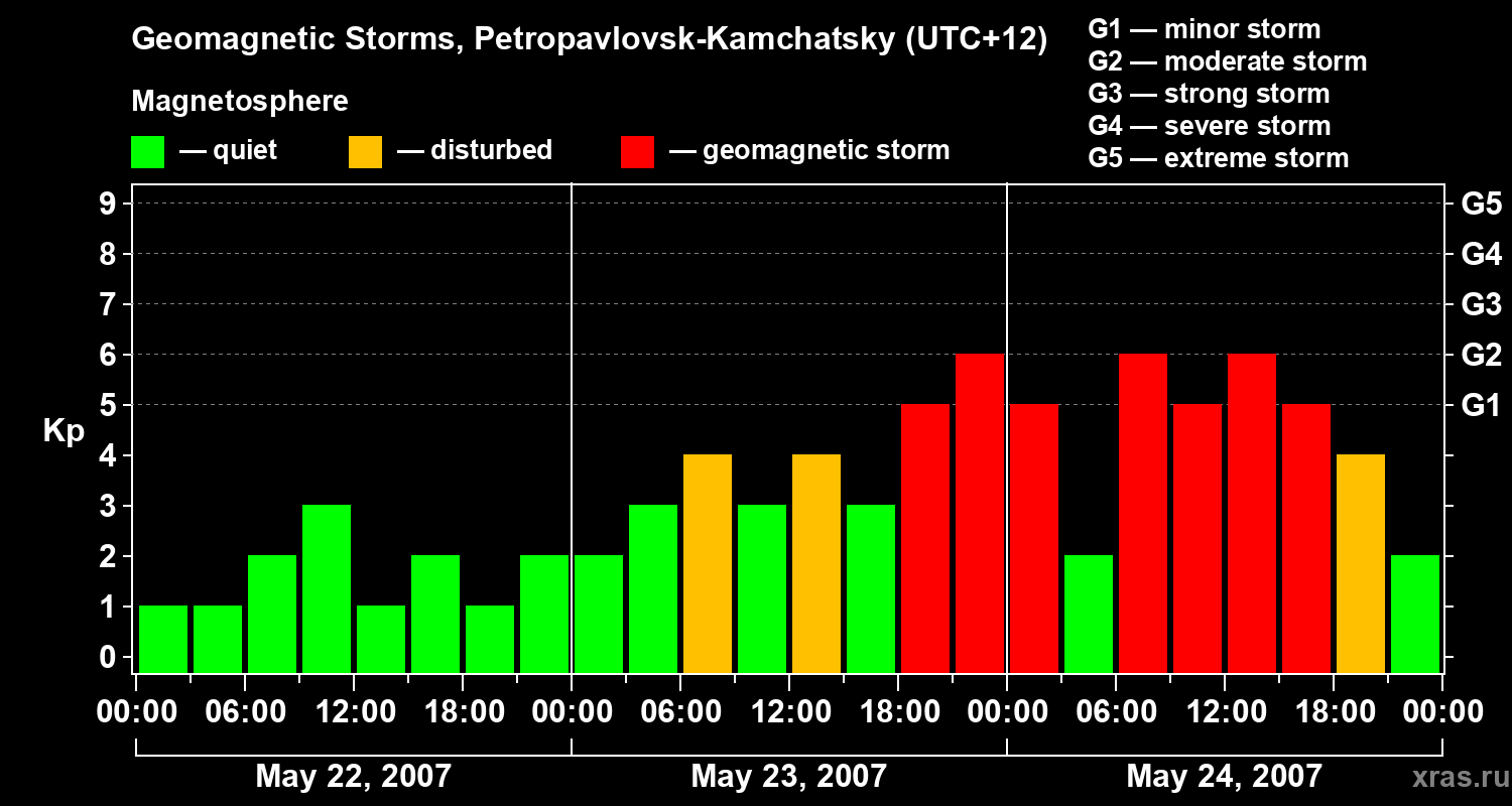 Geomagnetic storms in Petropavlovsk-Kamchatsky — May 24, 2007