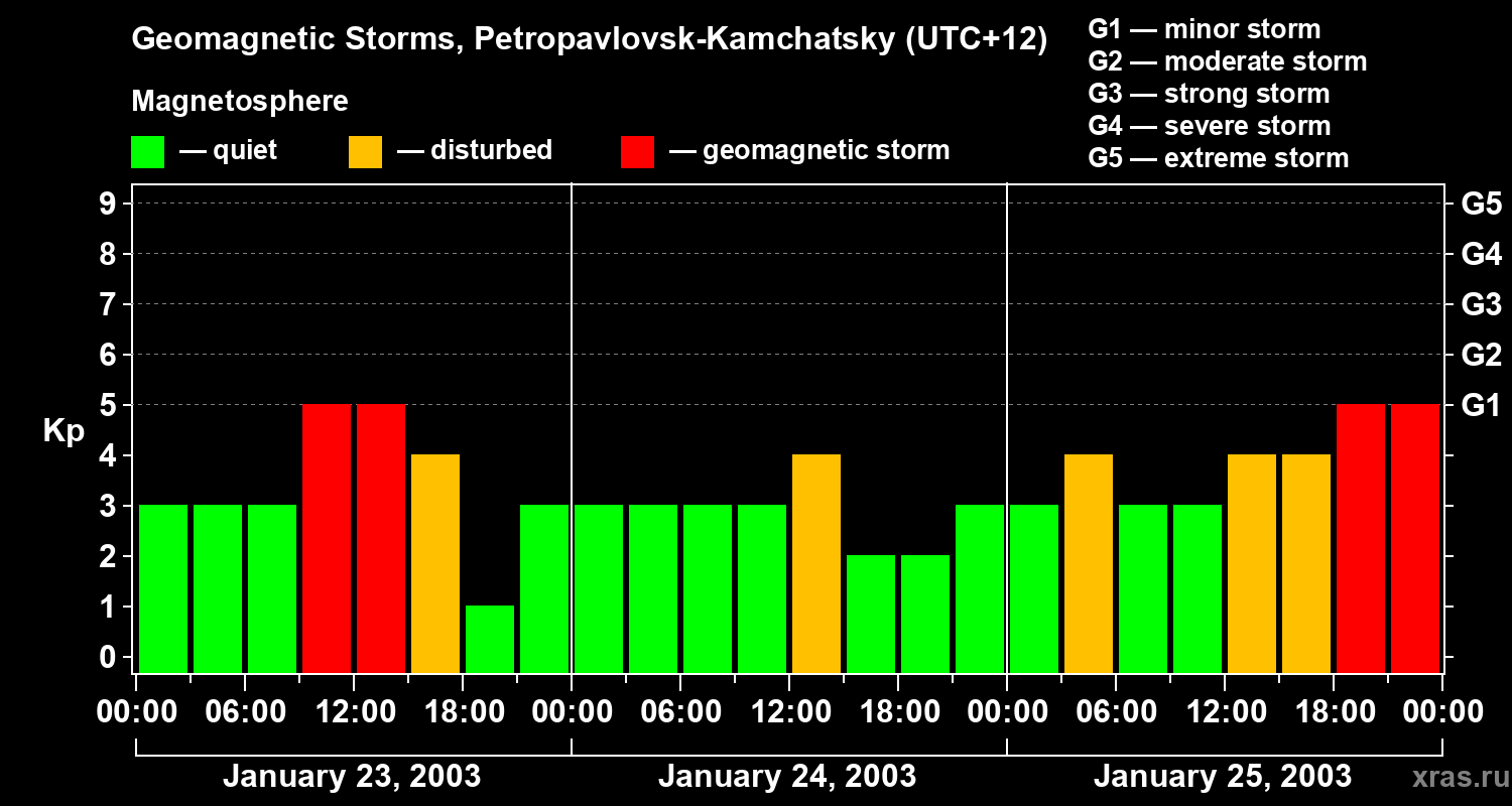 Geomagnetic storms in Petropavlovsk-Kamchatsky — Jan 25, 2003