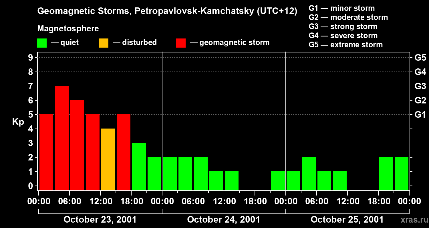 Geomagnetic storms in Petropavlovsk-Kamchatsky — Oct 25, 2001