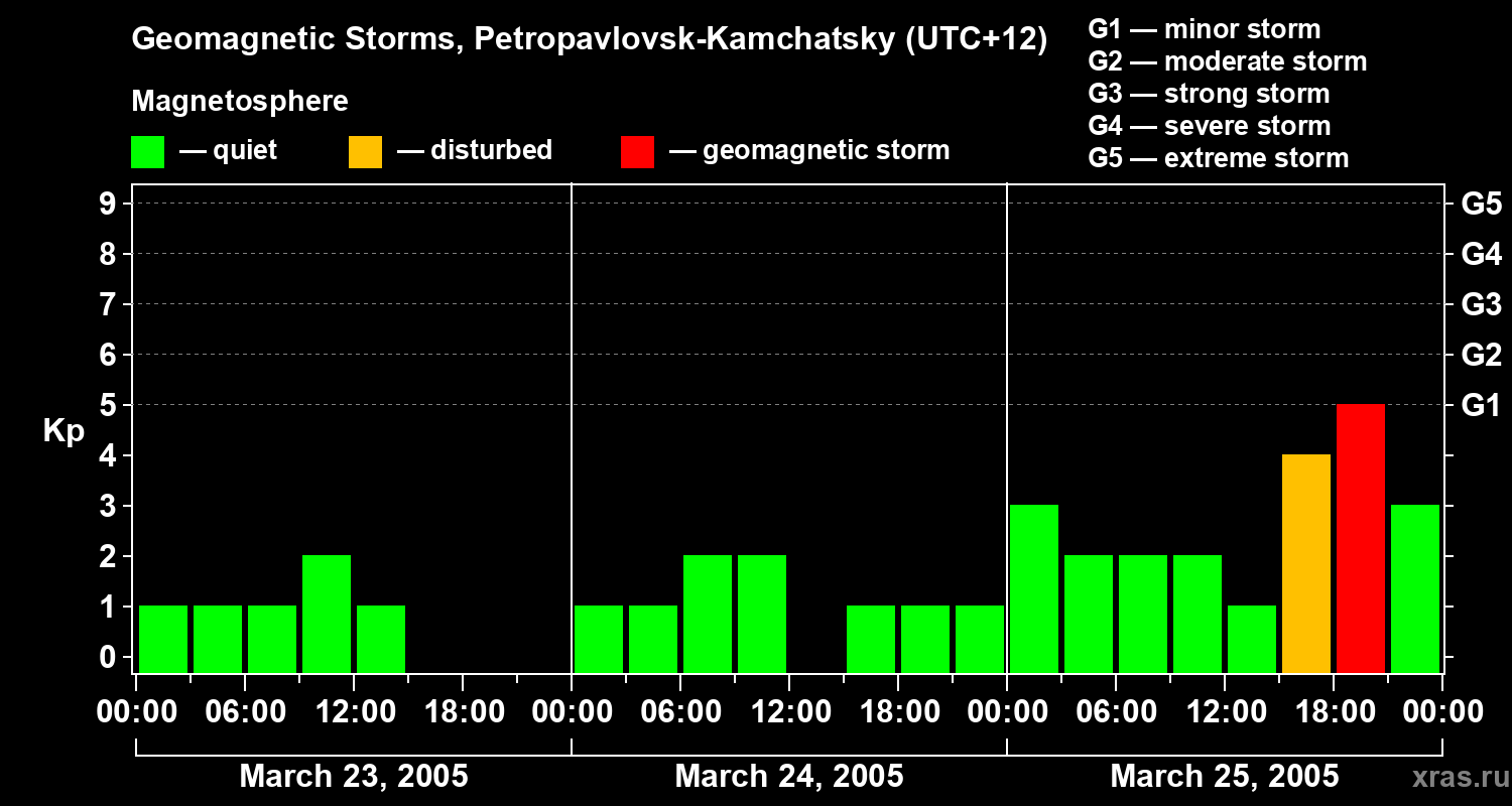 Geomagnetic storms in Petropavlovsk-Kamchatsky — Mar 25, 2005