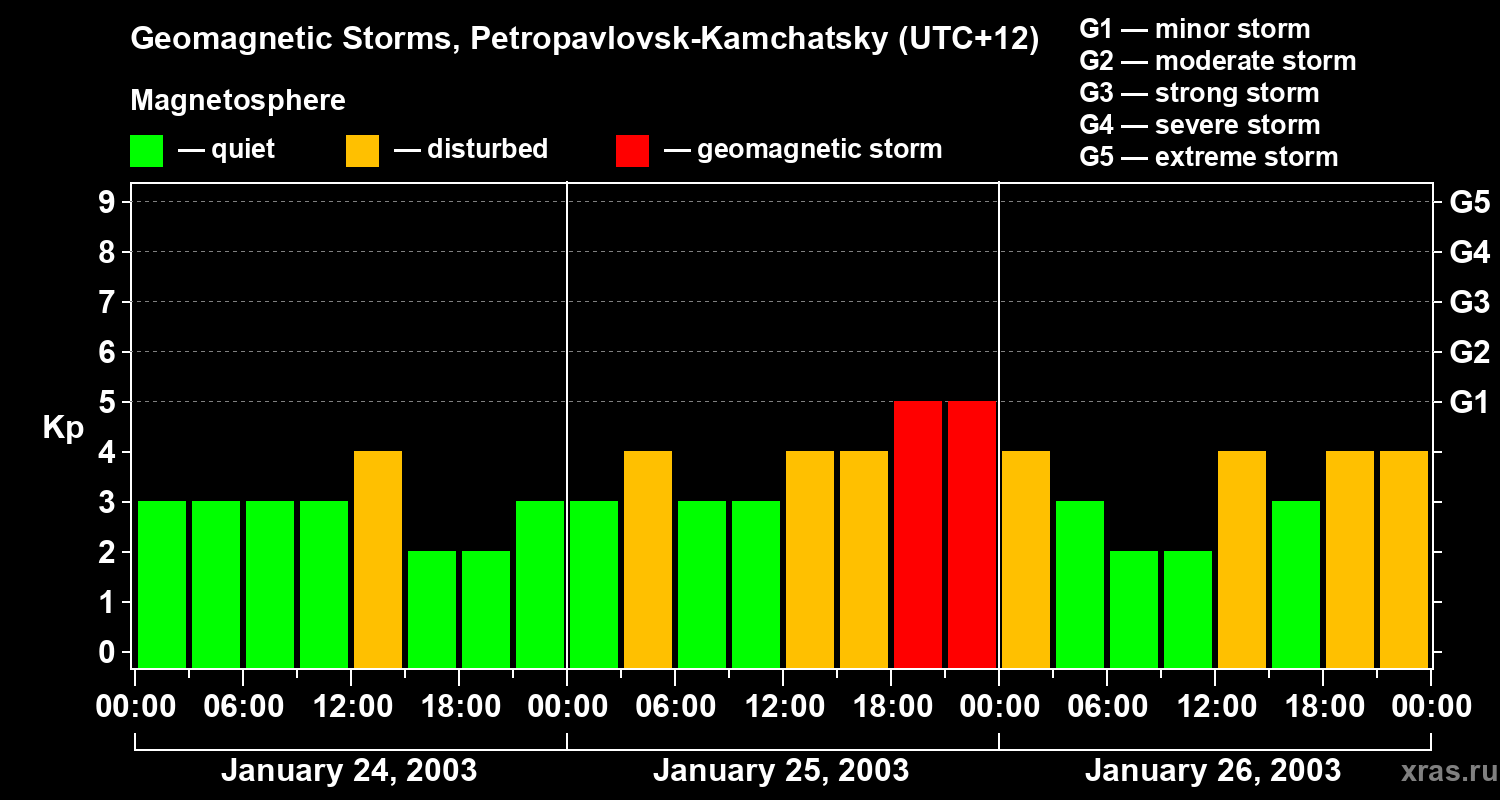 Geomagnetic storms in Petropavlovsk-Kamchatsky — Jan 26, 2003