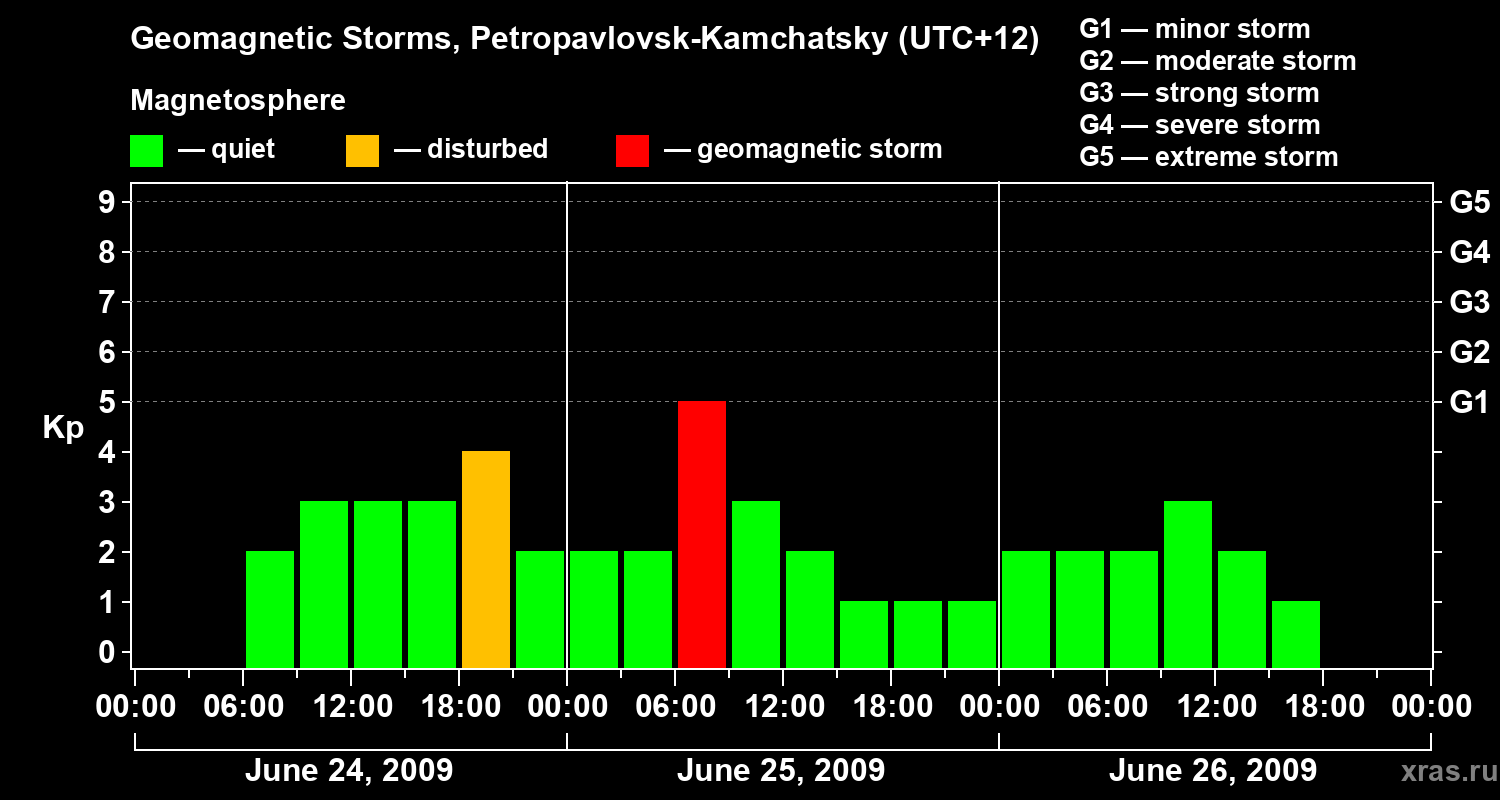 Geomagnetic storms in Petropavlovsk-Kamchatsky — Jun 26, 2009