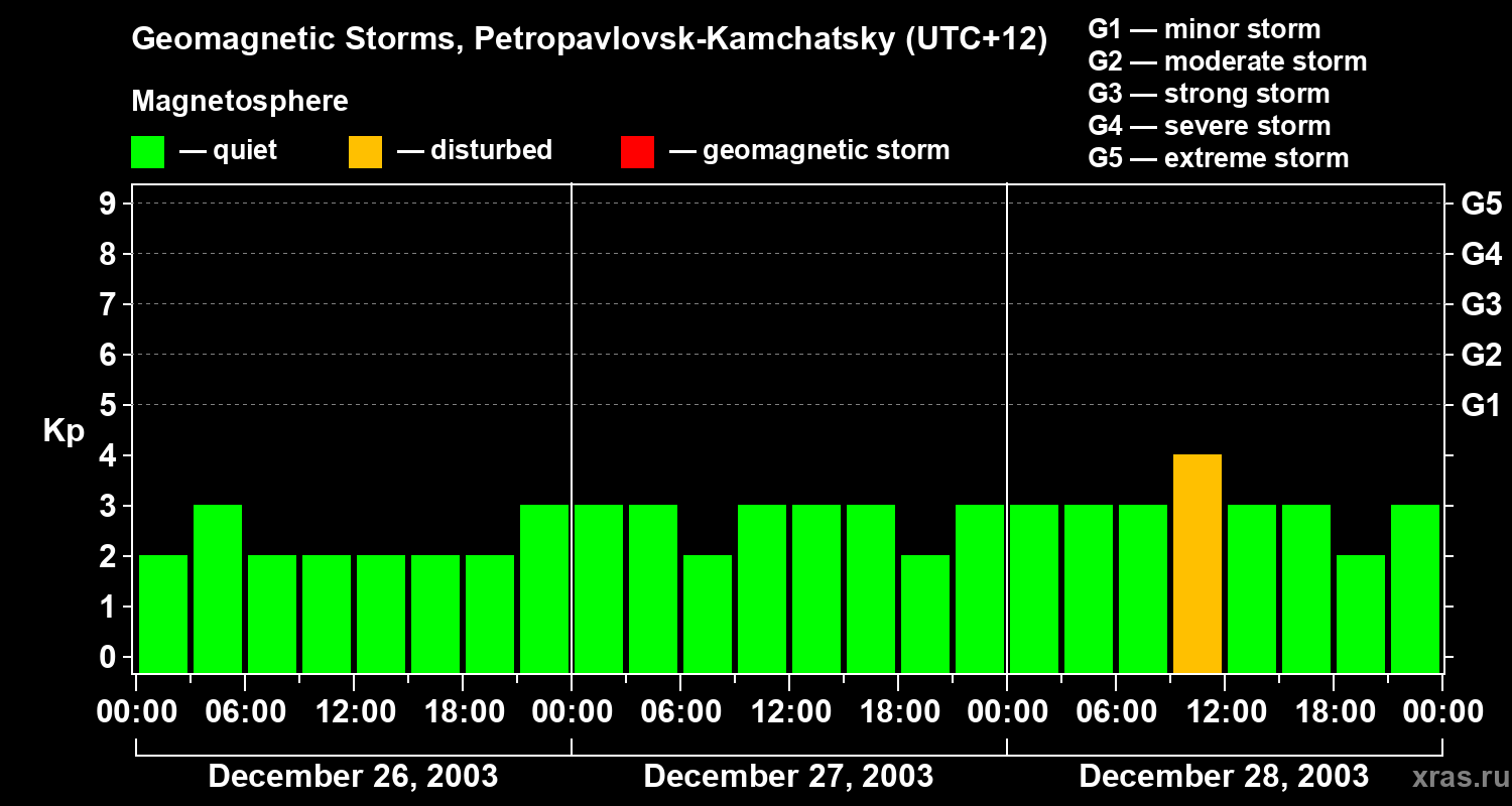 Geomagnetic storms in Petropavlovsk-Kamchatsky — Dec 28, 2003