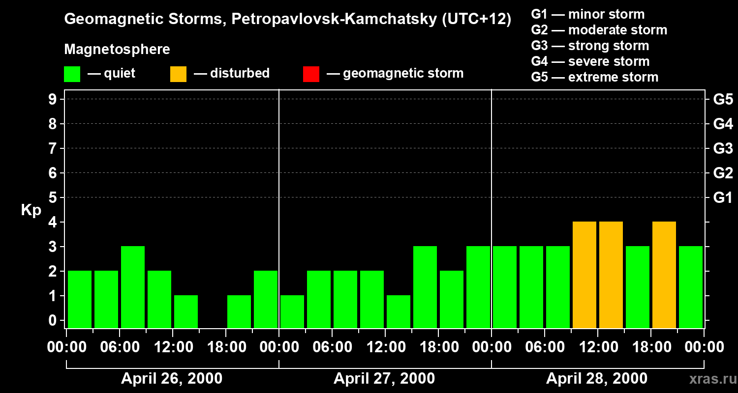 Geomagnetic storms in Petropavlovsk-Kamchatsky — Apr 28, 2000