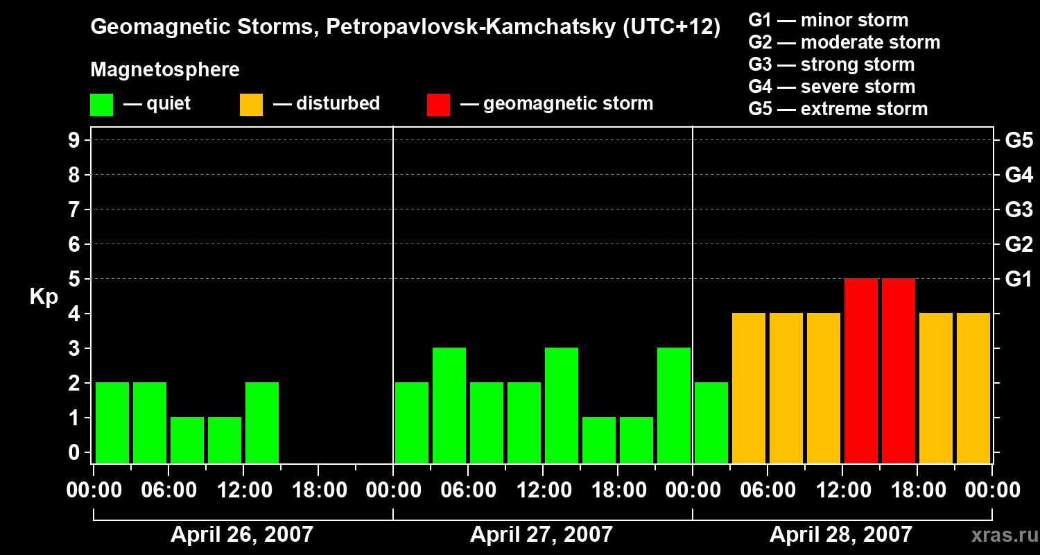 Geomagnetic storms in Petropavlovsk-Kamchatsky — Apr 28, 2007