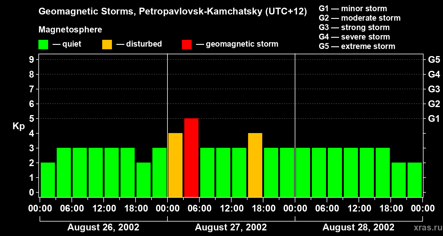 Geomagnetic storms in Petropavlovsk-Kamchatsky — Aug 28, 2002