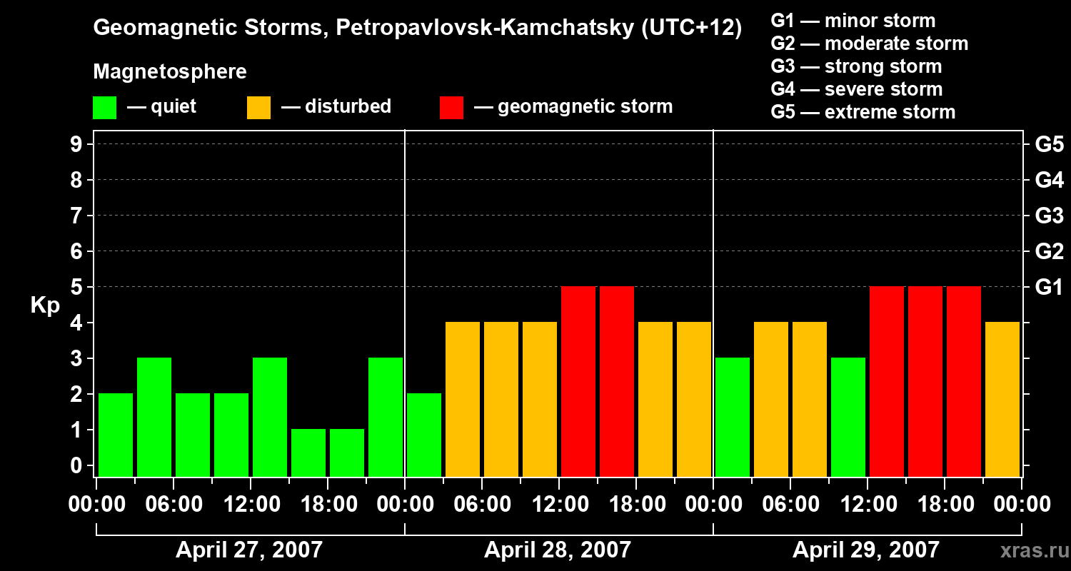Geomagnetic storms in Petropavlovsk-Kamchatsky on Apr 29, 2007